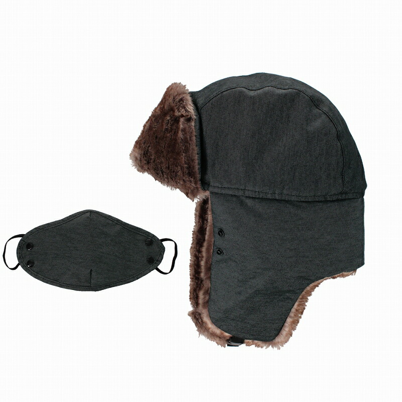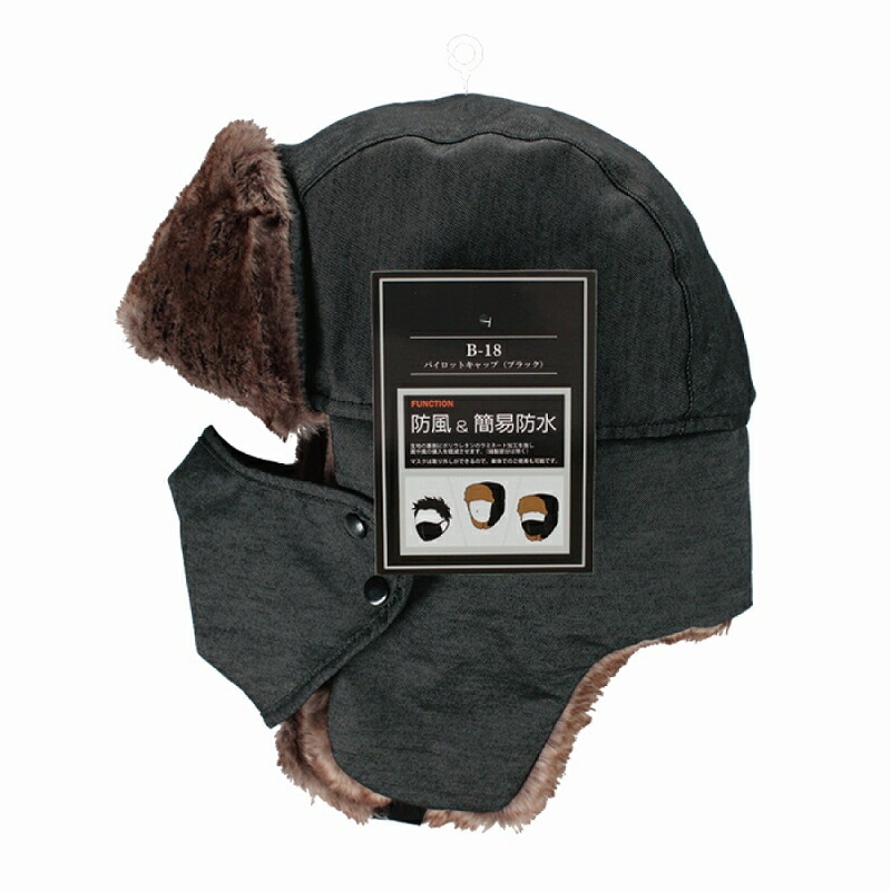 【おたふく手袋】 パイロットキャップ マスク付き 黒 ブラック 防風 簡易防水 防寒 耳当て 耳あて 内ボア ファー 帽子 ミリタリー 暖かい B-18