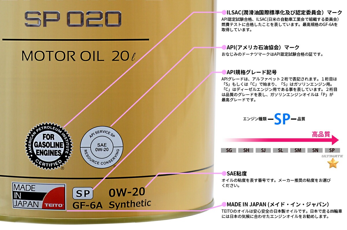 TEITO ULTIMATE(アルティメット) SPシリーズは、排出ガスの低減化や省燃費性能の向上を強化した乗用車用エンジンオイルです。