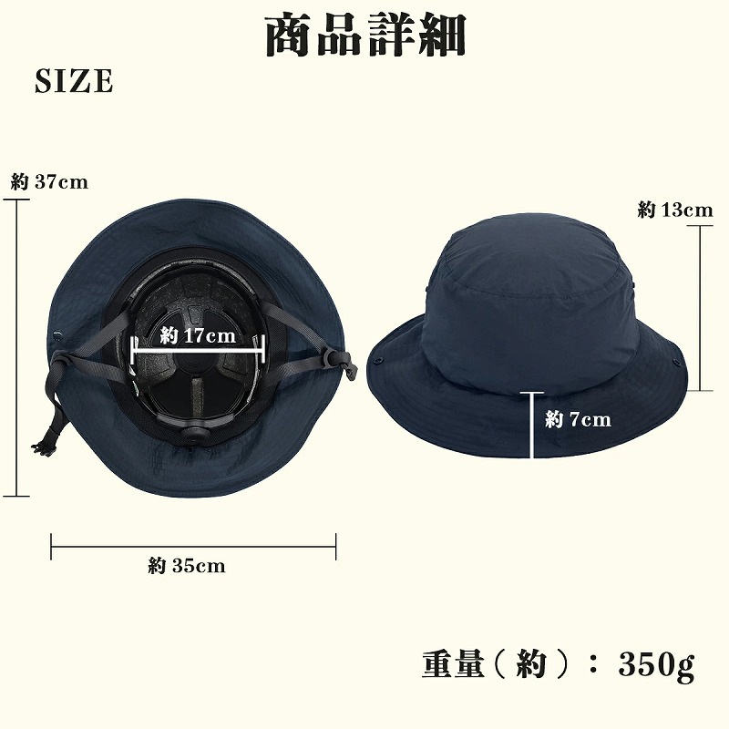 ●帽子(ハット部分)はUVカット95%で撥水加工済み
